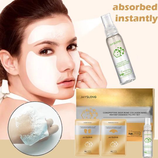 JAYSUING Spiral Peptide Deer Bone Collagen Nano Instant Essence Filling Set Cheek Patch and Forehead Patch Face Skin Care يخفف الخطوط الدقيقة مضاد للشيخوخة يرطب تشديد مصل الوجه