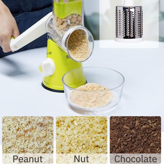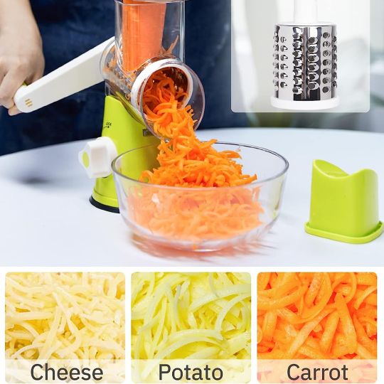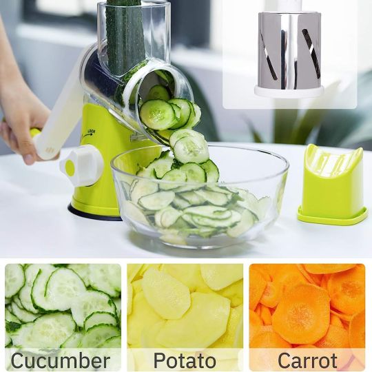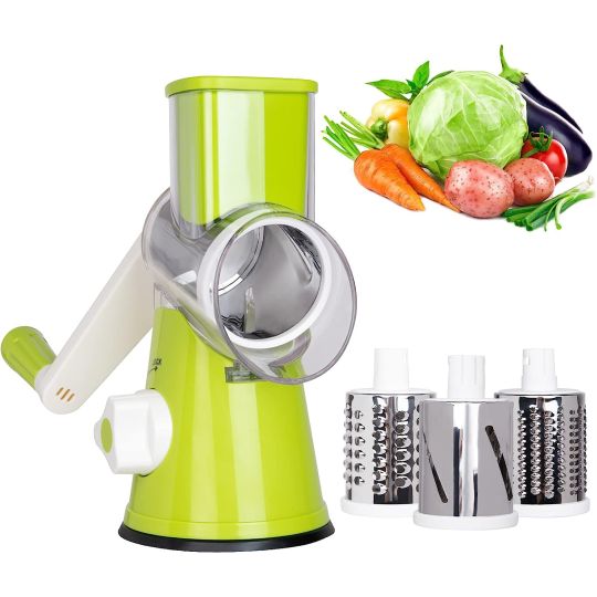 Multi-functional Manual Vegetable Cutter with 3 Sharp Drums Blades and Strong Suction Base