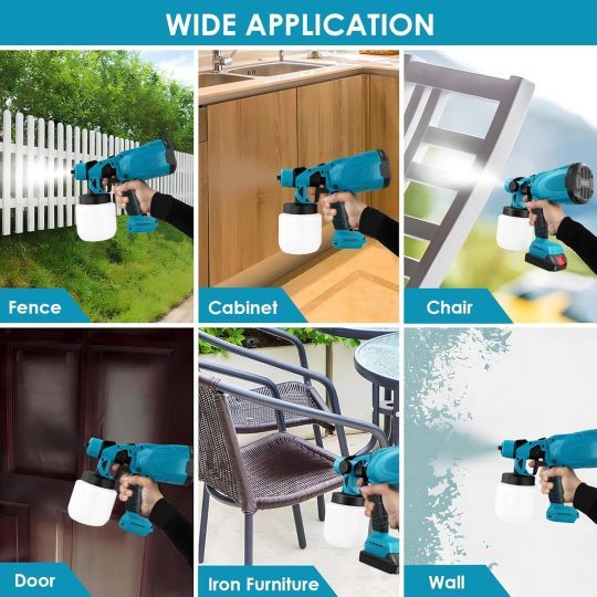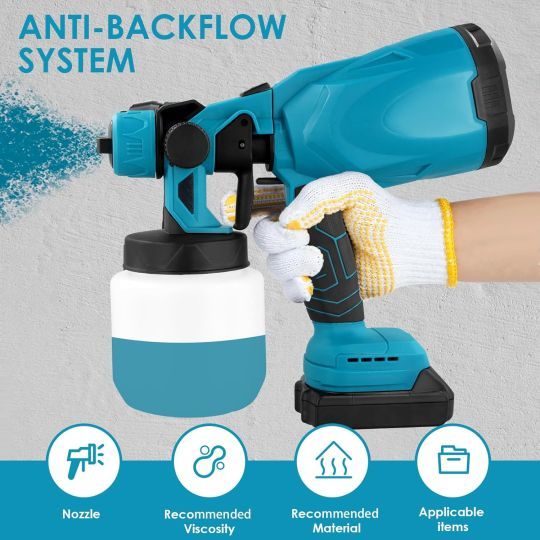 The electric paint gun has 3 spray modes: vertical spray, horizontal spray, and circular spray, and with 1mm/1.8mm/2.5mm copper nozzle. Adjustment is done by rotating the nozzle of the paint. spray system. The spray distance is 200-500 cm, the width is 200-300 mm, the air flow is 160 l/min and the paint flow is 500-800 ml/min