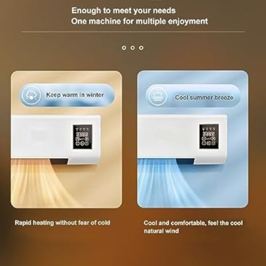 Wall Mounted Air Cooler and Heater, Quiet Wall AC and Heater Combo with Remote Control for Room Kitchen Office Desk Bedroom Camping, A Fast Cooling, 2 in 1 Air Heater, PTC ceramic technology