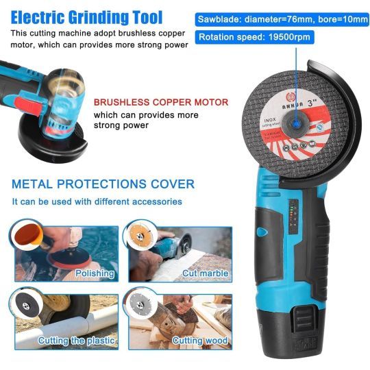 Mini Angle Grinder, 19500rpm Mini Grinders Power Tools, Handheld Portable Electric Grinder Machine with 2 Cutting Disc and 2 1500mAh Battery
